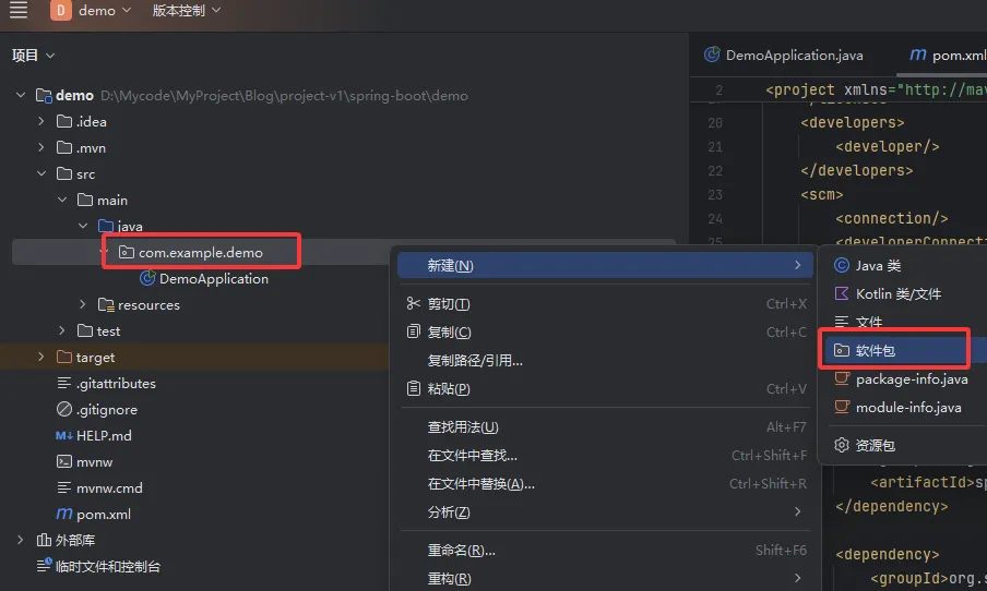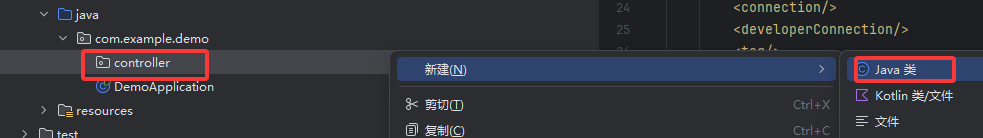 接下来便可以正式写代码了 右键com.example.demo,新建一个名为 controller 的软件包