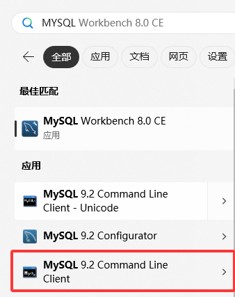 快捷键Win+Q,搜索MySQL并打开MySQL 9.2 Command Line Client
