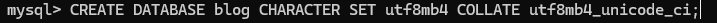 CREATE DATABASE blog CHARACTER SET utf8mb4 COLLATE utf8mb4_unicode_ci;