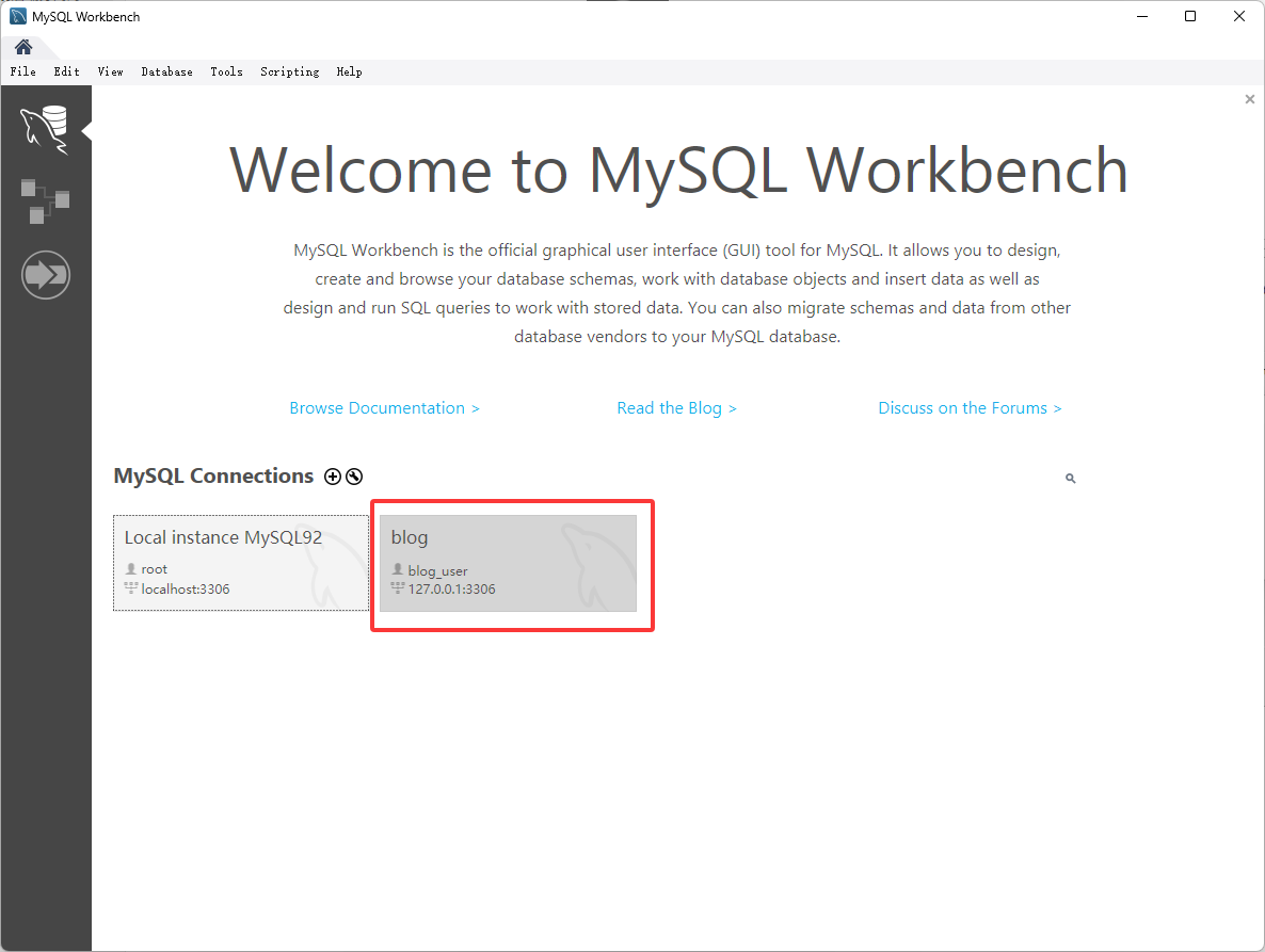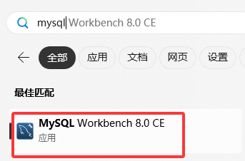 快捷键Win+Q,搜索MySQL并打开Workbench
