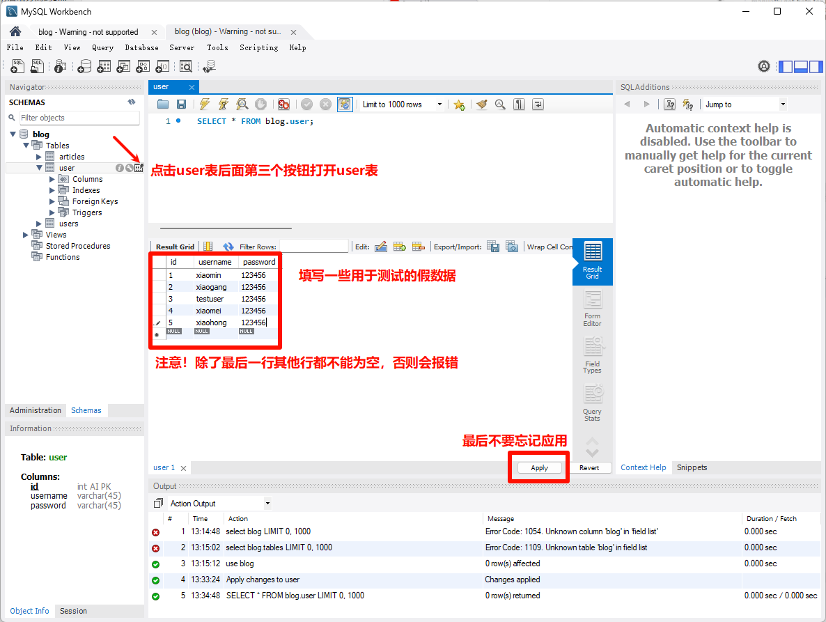 。你也可以按自己想的修改用户名与密码。 授予用户对blog数据库的所有权限: