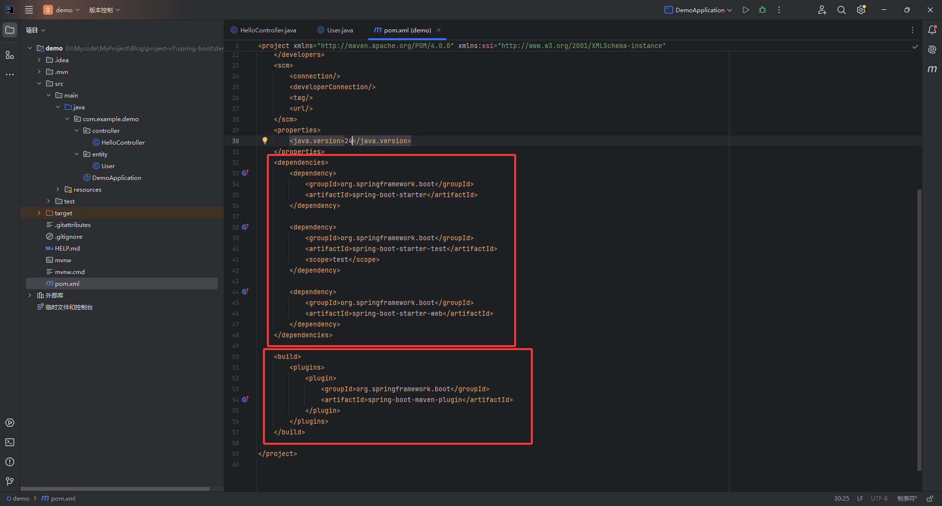 <dependency> <groupId>com.mysql</groupId> <artifactId>mysql-connector-j</artifactId> <version>9.2.0</version></dependency>打开application.properties,配置数据库连接 注意要在spring.datasource.url=jdbc:mysql://localhost:3306/后填写自己的数据库名, spring.datasource.username=数据库用户 spring.datasource.password=这里填写密码