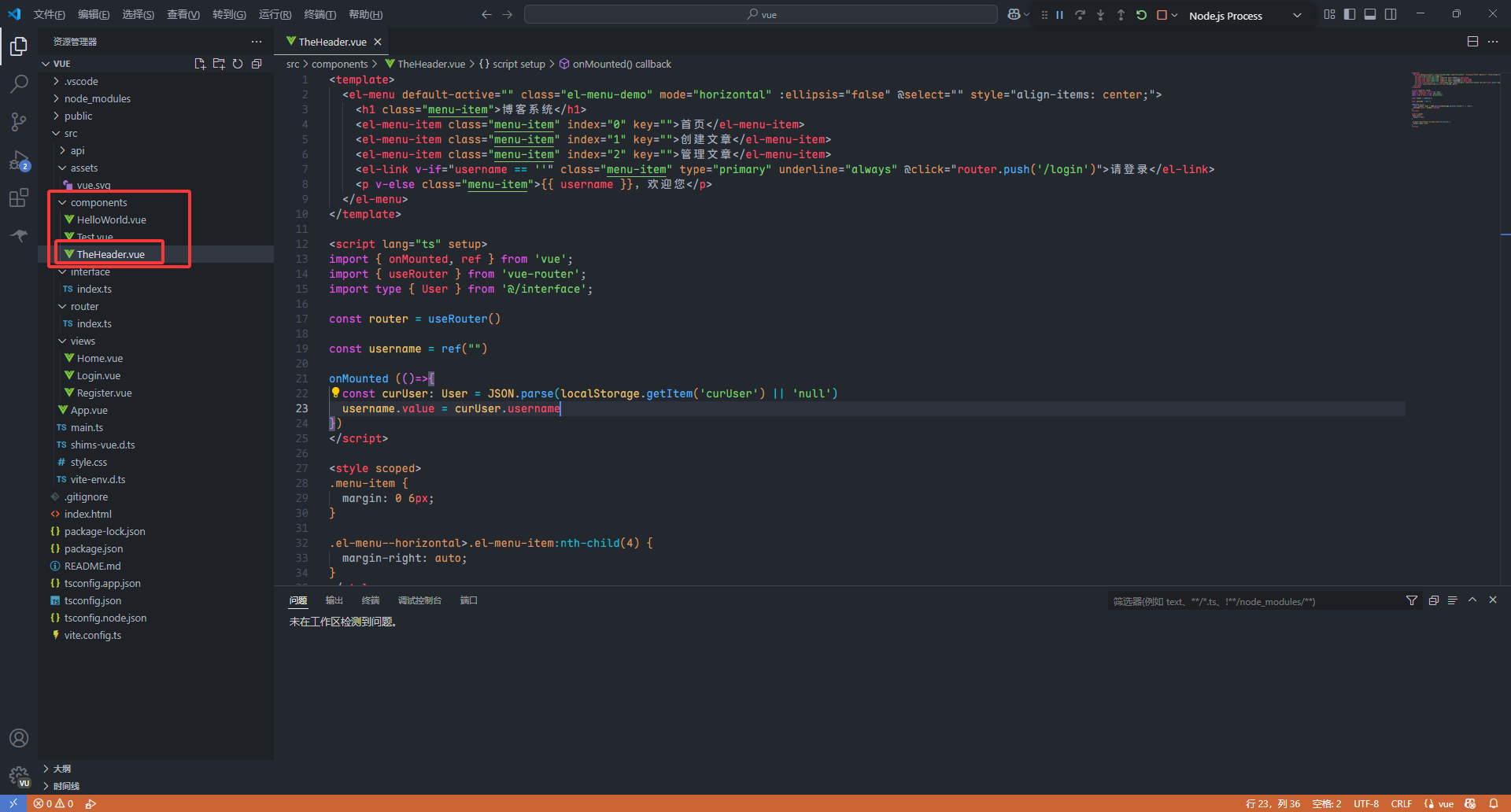 <template> <el-menu default-active="" class="el-menu-demo" mode="horizontal" :ellipsis="false" @select="" style="align-items: center;"> <h1 class="menu-item">博客系统</h1> <el-menu-item class="menu-item" index="0" key="">首页</el-menu-item> <el-menu-item class="menu-item" index="1" key="">创建文章</el-menu-item> <el-menu-item class="menu-item" index="2" key="">管理文章</el-menu-item> <el-link v-if="!isLogin" class="menu-item" href="login" type="primary" underline="always">请登录</el-link> <div v-else class="menu-item" style="display: flex;"> <p class="menu-item">{{ username }},欢迎您</p> <el-button type="primary" class="menu-item" round @click="logout">注销</el-button> </div> </el-menu></template>