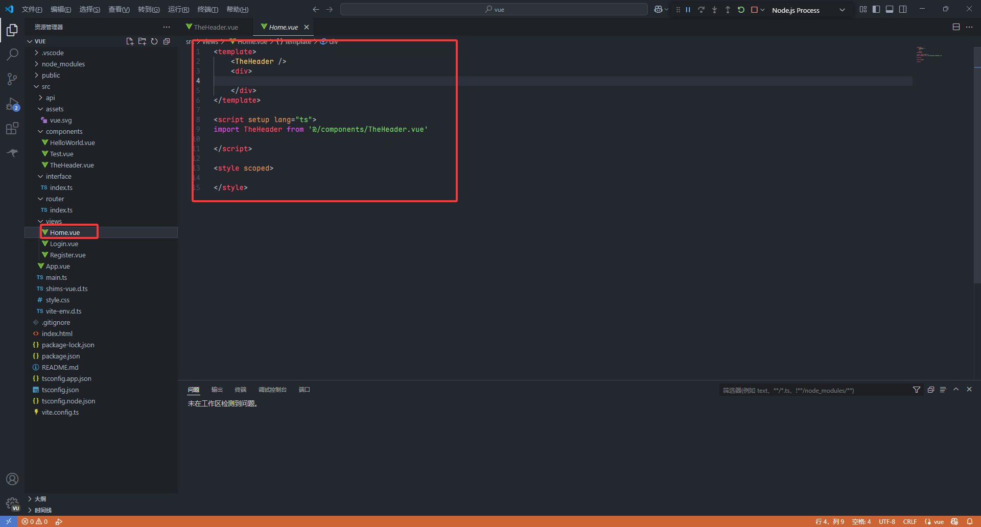 一个主页通常包含顶部导航,主要内容区,页脚。 大部分网站都是这样的,你可以打开各类网站观察一下他们的布局,在此我不赘述。 一个顶部导航可能会在很多地方都能用到,所以它最好是个组件,以便我们复用。 在src下的components下创建一个TheHeader.vue