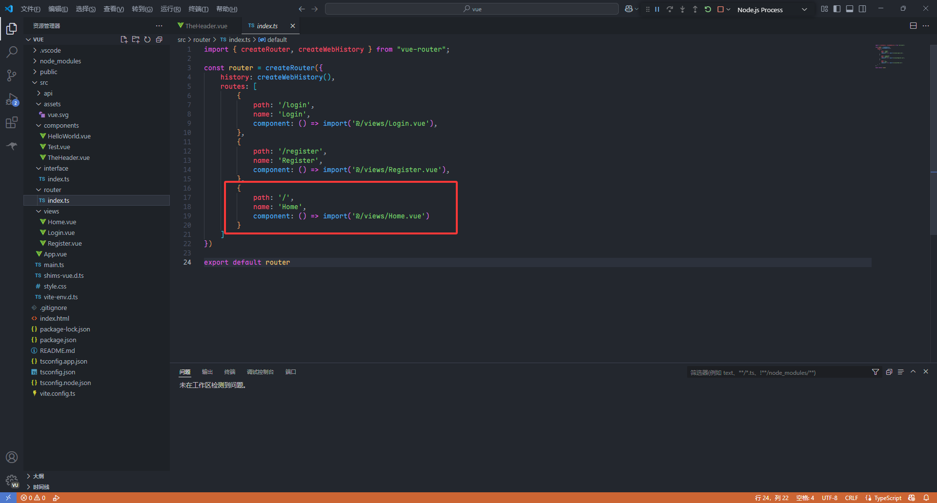 </style>按照惯例在router里加上Home,这样我们就能正确路由到Home了