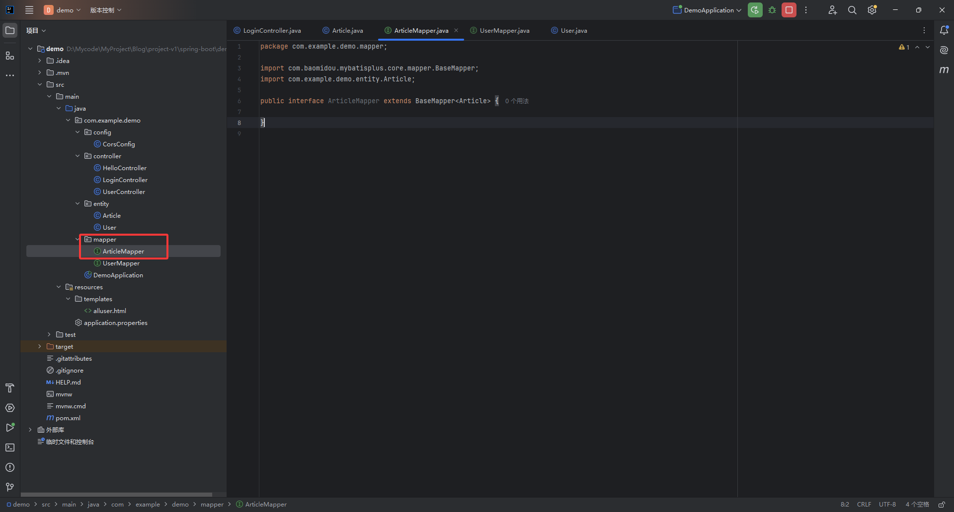 import com.baomidou.mybatisplus.core.mapper.BaseMapper;import com.example.demo.entity.Article;