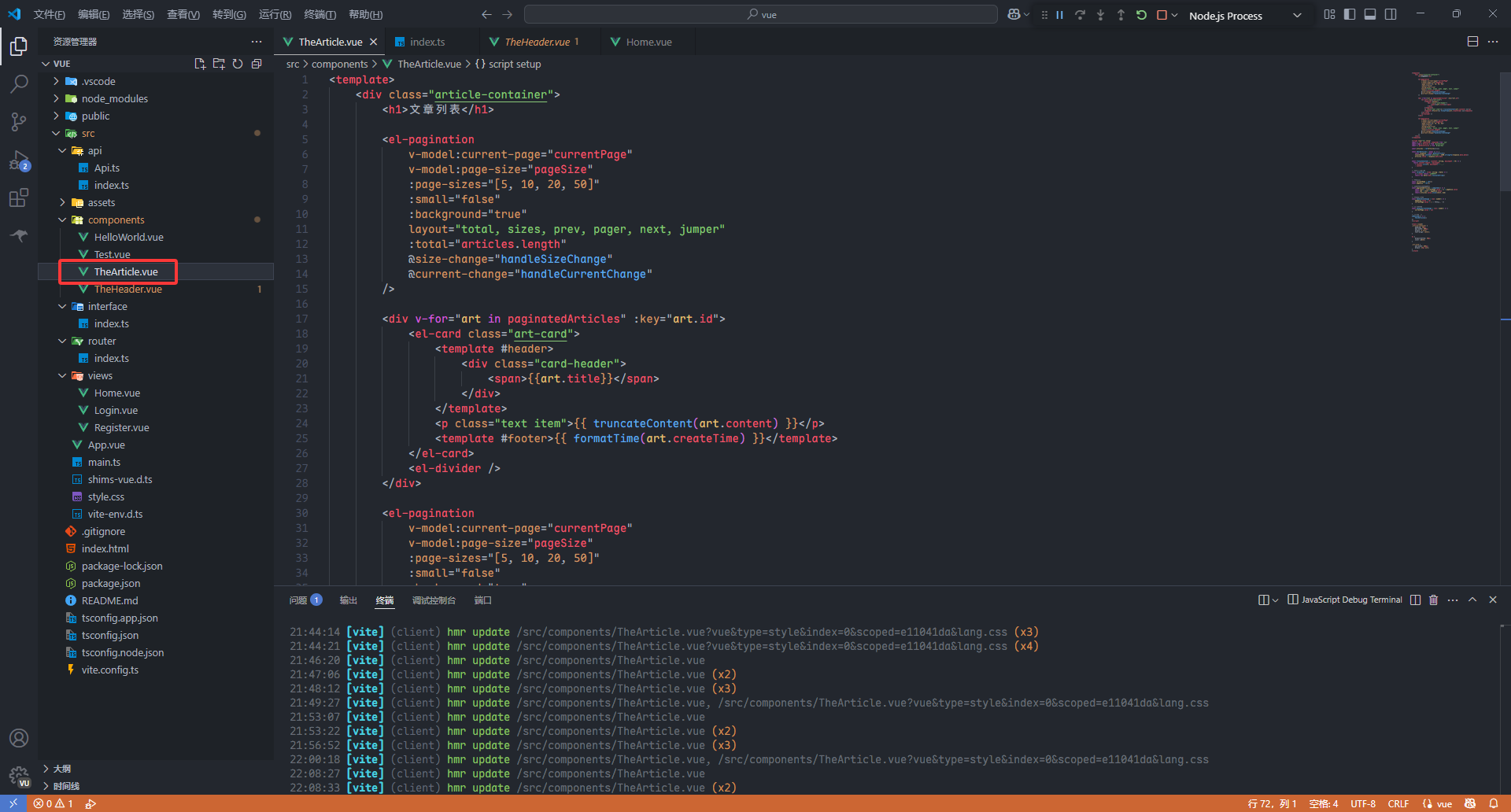 // 组件挂载时,首次加载文章数据onMounted(() => { fetchArticles();});</script>
