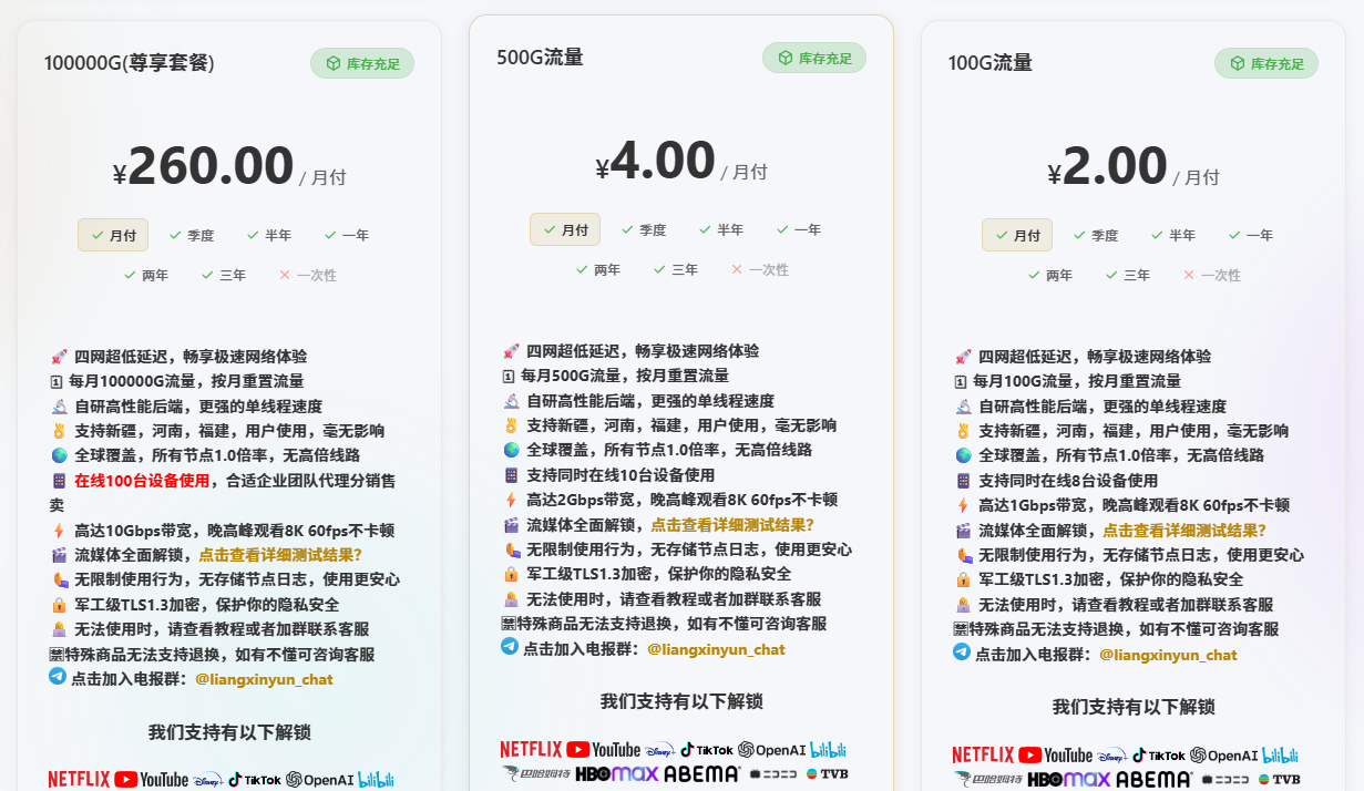 良心云,便宜机场,有月付套餐和一次性套餐,最低的2元100GB/月。适合轻度用户或者当备用(我自己也在用),总之性价比很高。