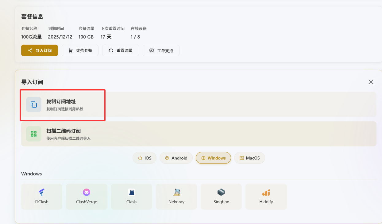 - 机场官网都会提供订阅链接(前提是你购买了套餐),以良心云举例。