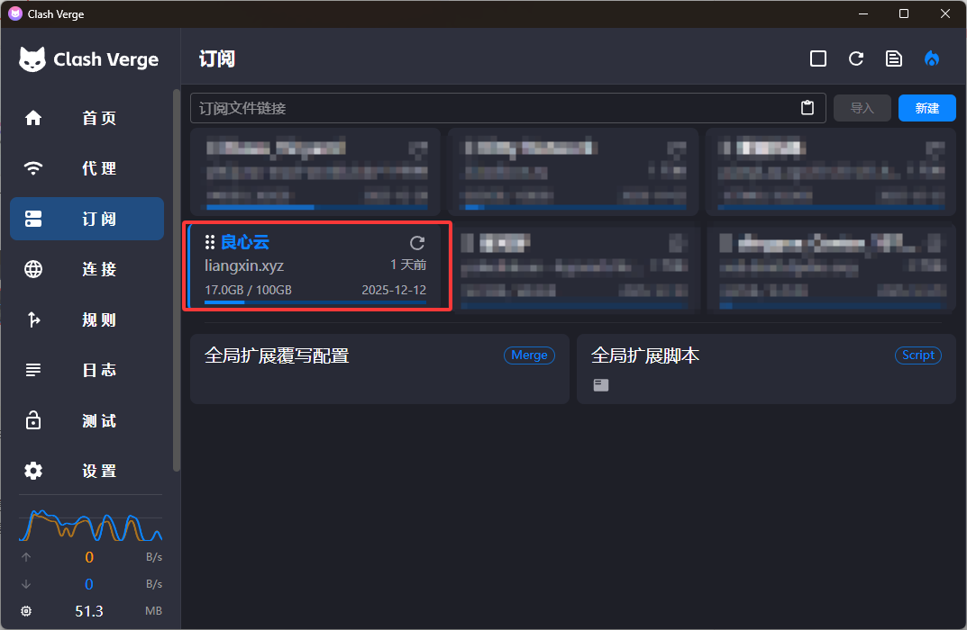 - 从您的服务提供商获取 Clash 配置文件(通常为 YAML 格式,或者是在线链接)