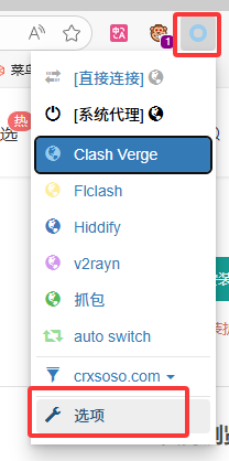 打开选项填写Clash代理地址,就可以单独只让浏览器走代理,而电脑上的其他软件不受影响。