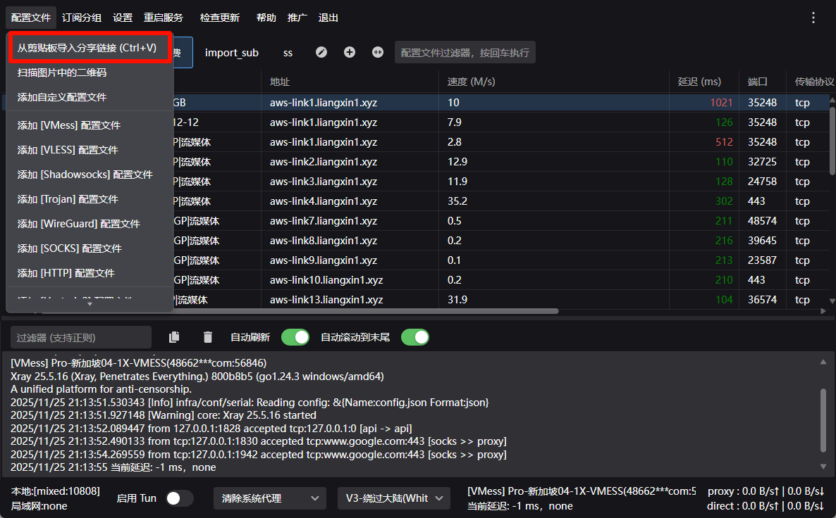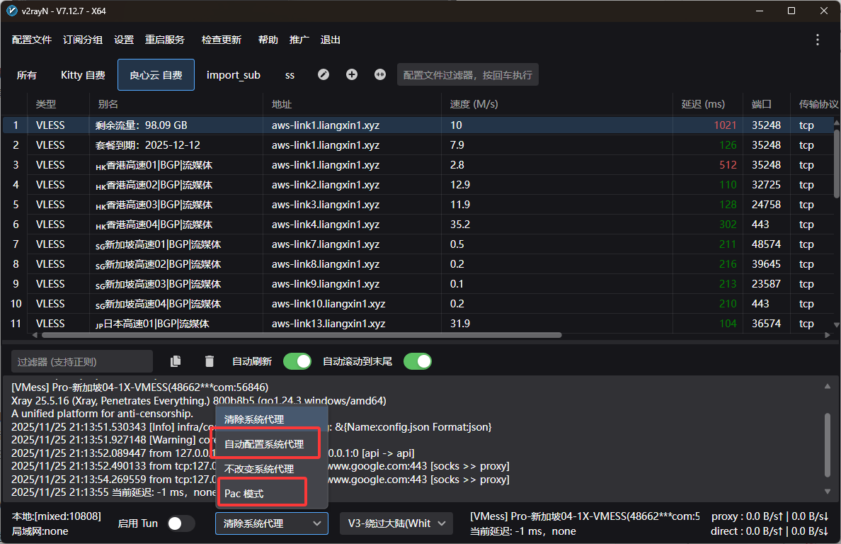 V2rayN 是基于 V2Ray 核心的 Windows 平台代理工具,界面简洁,功能强大,支持多种代理协议。