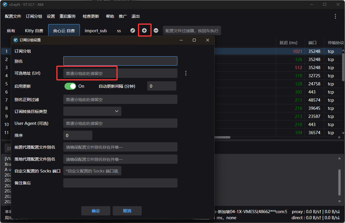 - 或按+号手动填写信息,主要是可选地址填订阅链接,取名。