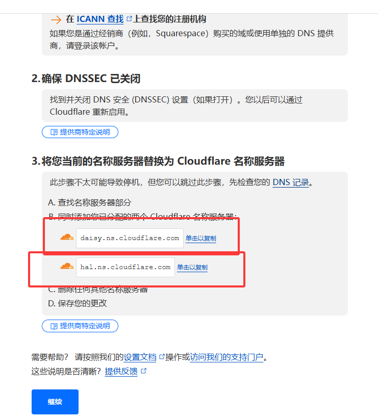 回到注册域名的网站,输入两个名称服务器,完成注册