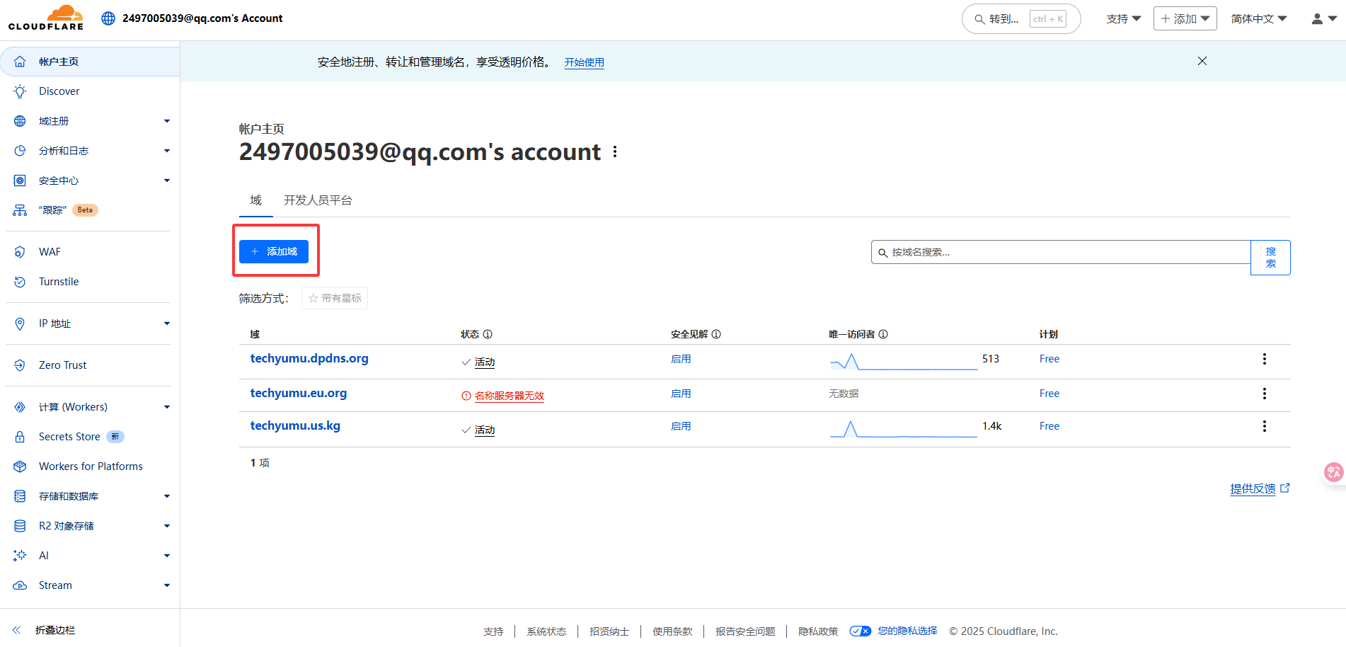 我们来添加我们的域名