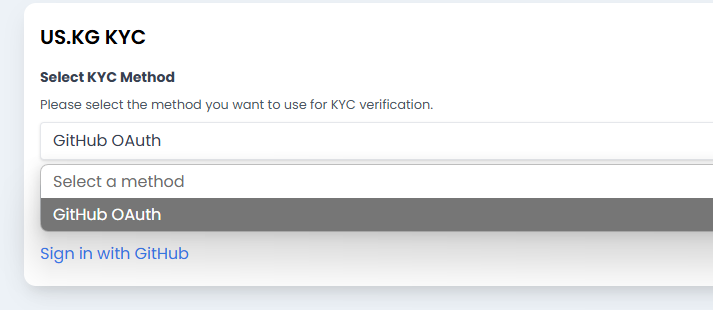 登录完毕后会让我们进行KYC验证,这里官方只提供了Github的验证办法,注意,只支持注册超过180天的Github账户