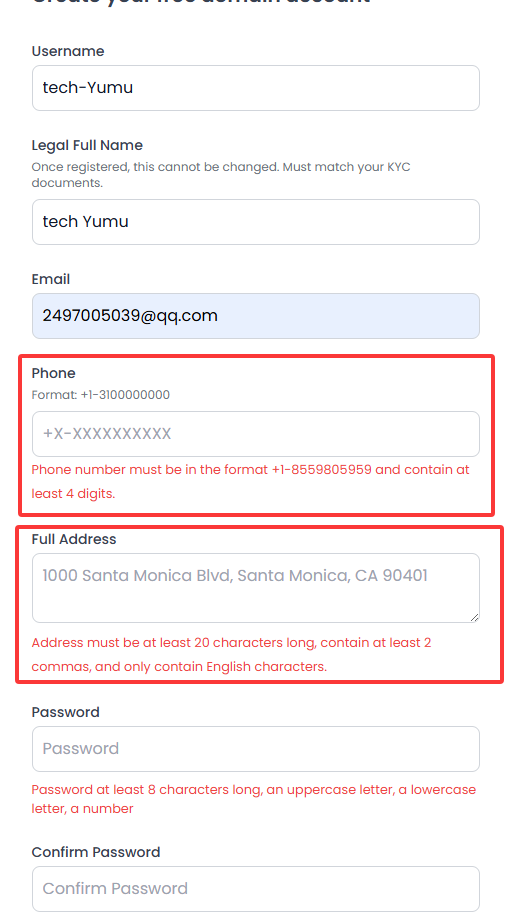下面的Phone和Full Address先不填